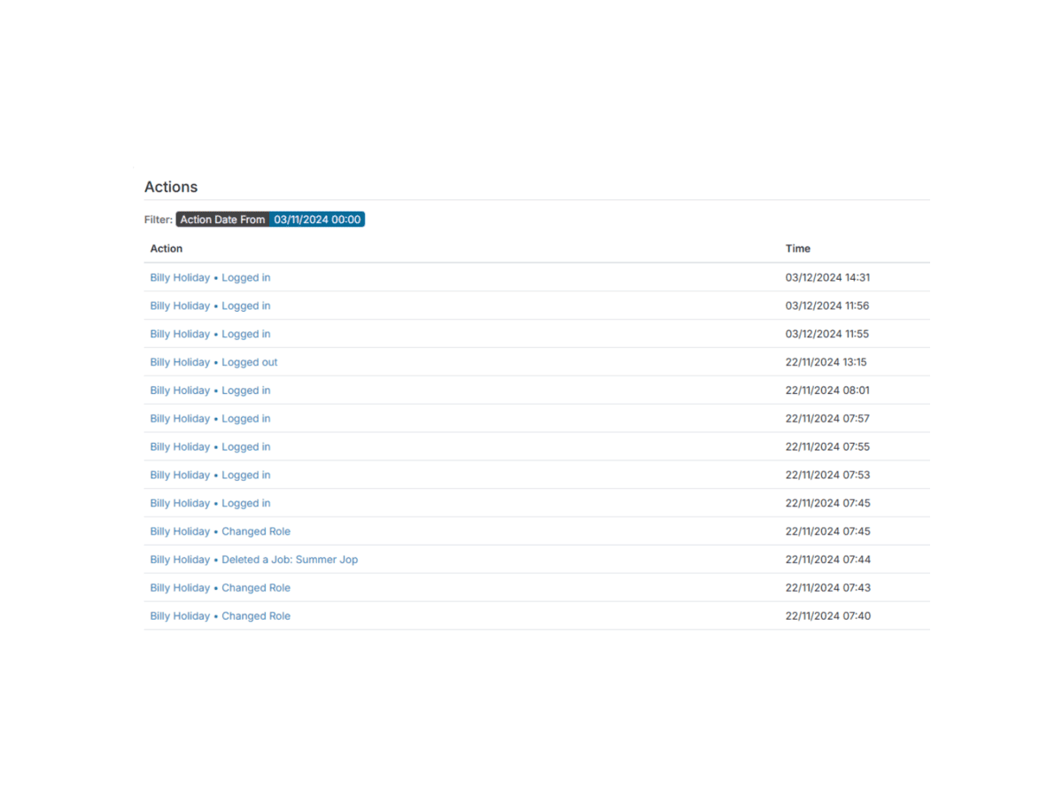 This per-action logging provides organisations with a transparent view of user activity, from login events to data modifications and administrative actions.