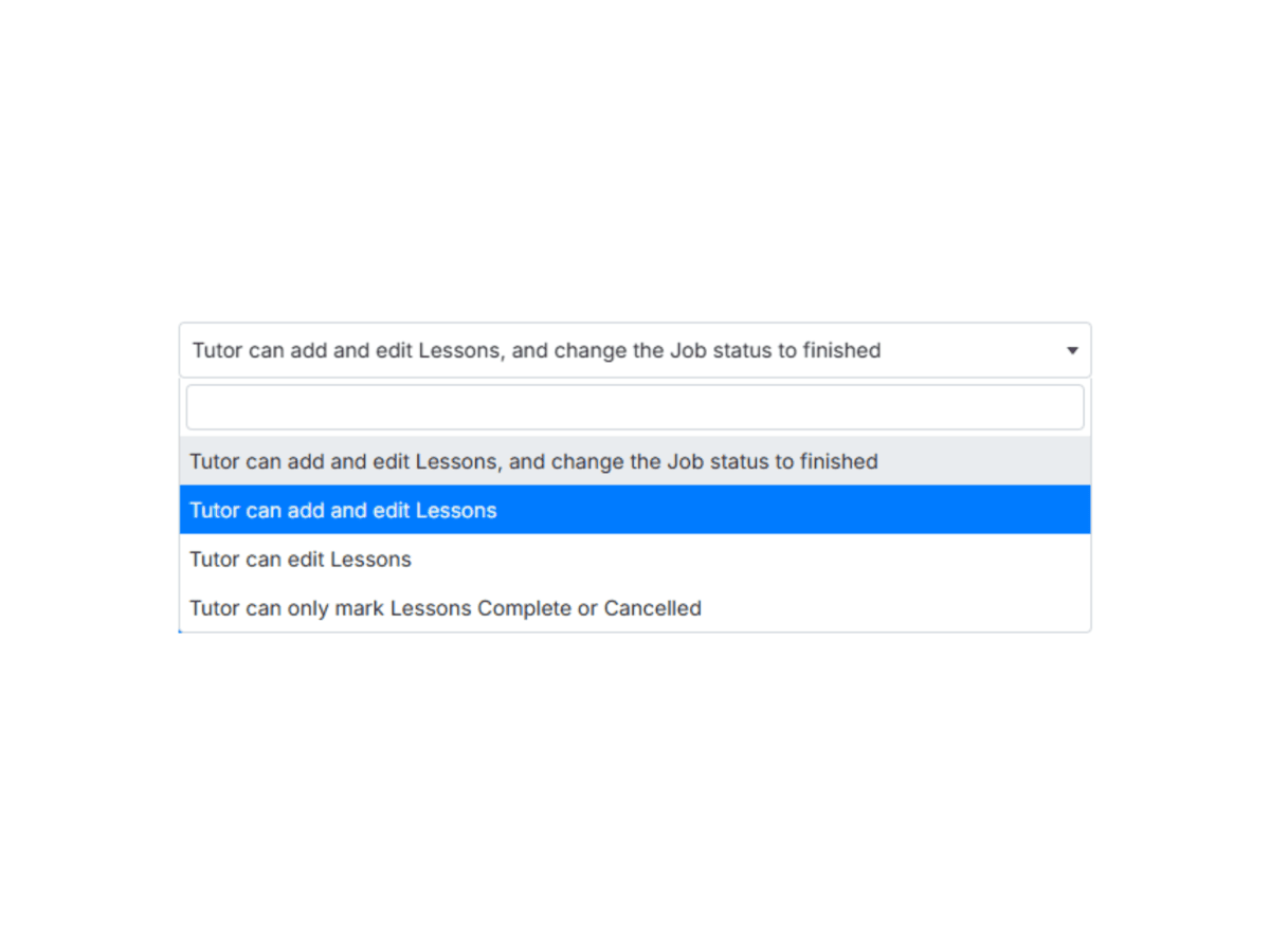 Alternatively, you can restrict their access to certain features, such as managing job statuses (e.g., marking a lesson as "in progress" or "finished"), ensuring that only authorised staff can make those updates