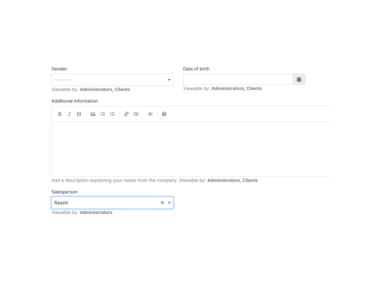 With custom, filterable fields, you can add specific data points beyond the standard options—such as unique client preferences, additional lesson notes, or specialised job requirements—ensuring that all essential information is easily accessible within the platform.